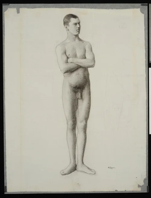 Male Nude Standing, by Richard Henry Logan, date unknown. Conte crayon on laid paper.